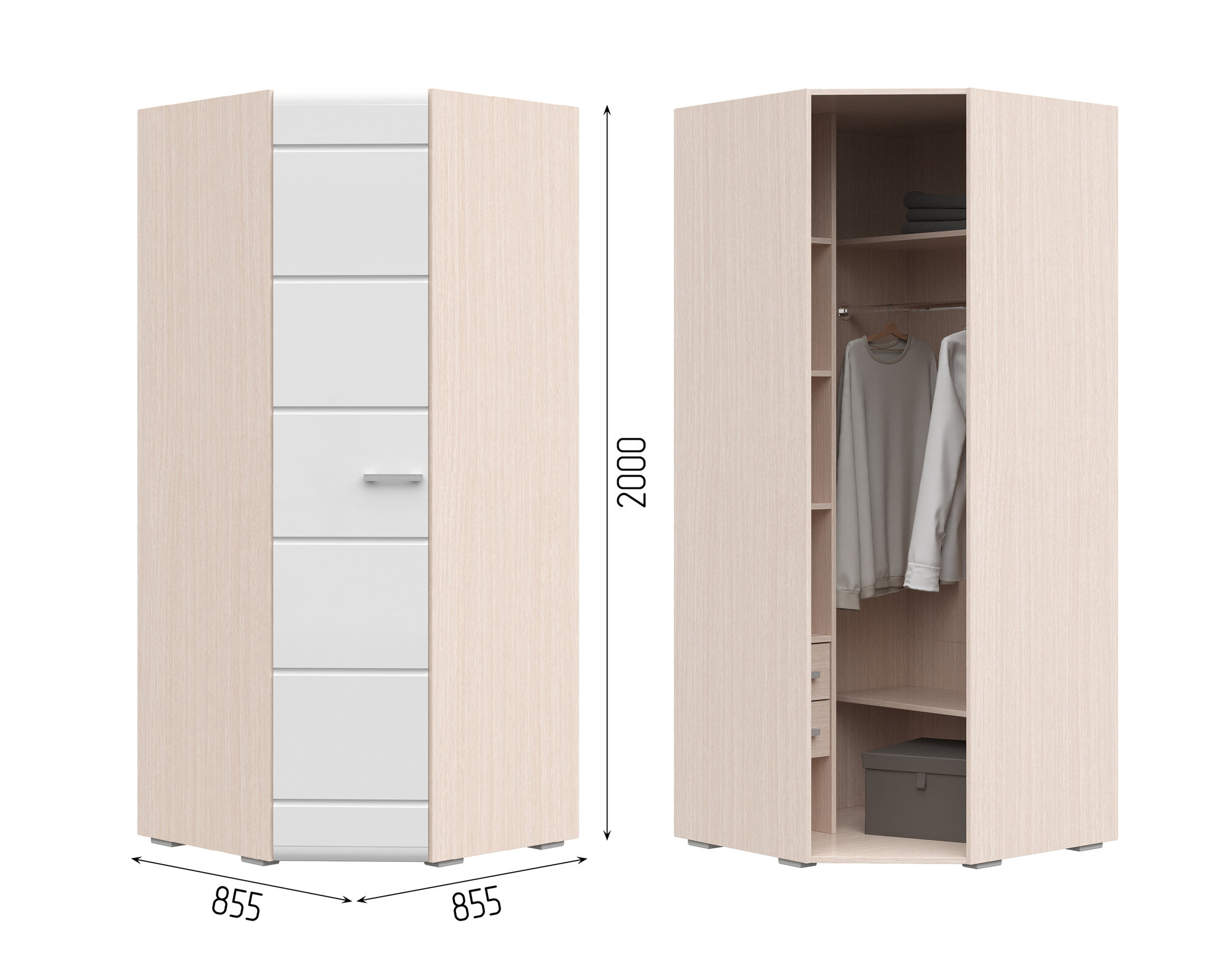 10 цен на Шкаф угловой одностворчатый Симба (850*2000*850), цвет Дуб белфорт/белый глянец Стендмебель