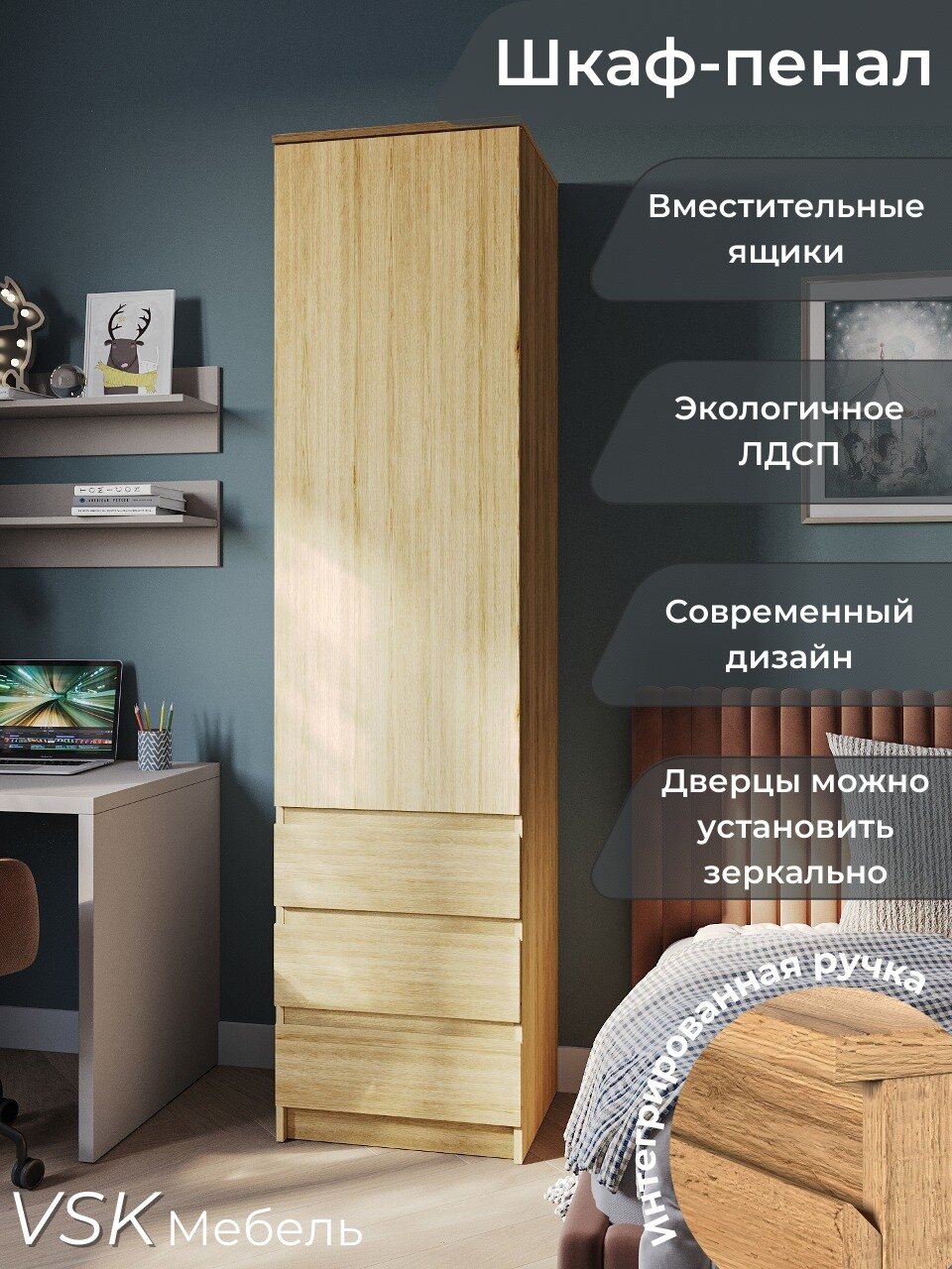 Отзывы на Шкаф-пенал с распашной дверцей и выдвижными ящиками STARK ШКЯ-1, Дуб Вотан, 50,1х200,3х43,3 см (ШхВхГ)