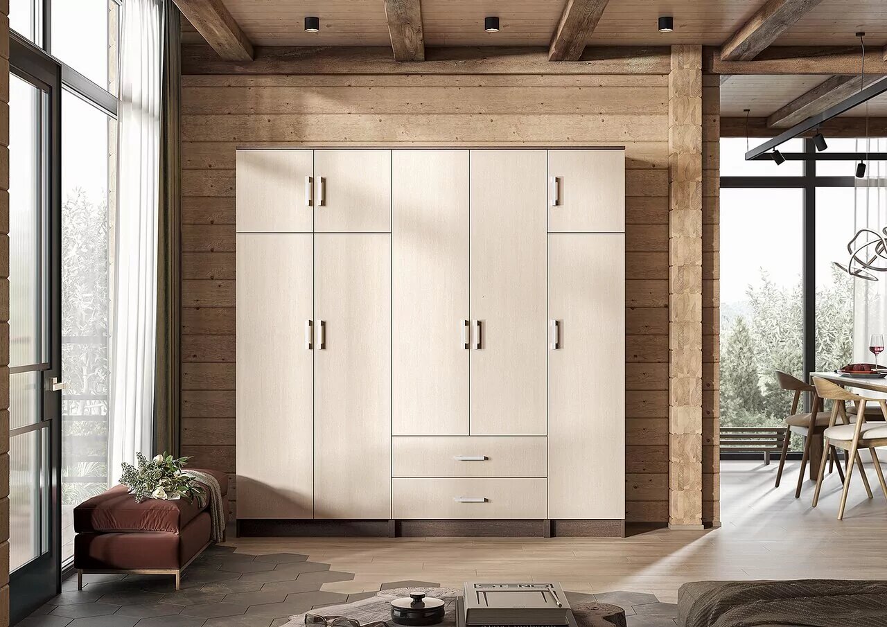 Шкаф для одежды распашной Нонтон Луас, 2 шт, 320 см, 20 полок и 2 штанги, эндгрейн / меланж