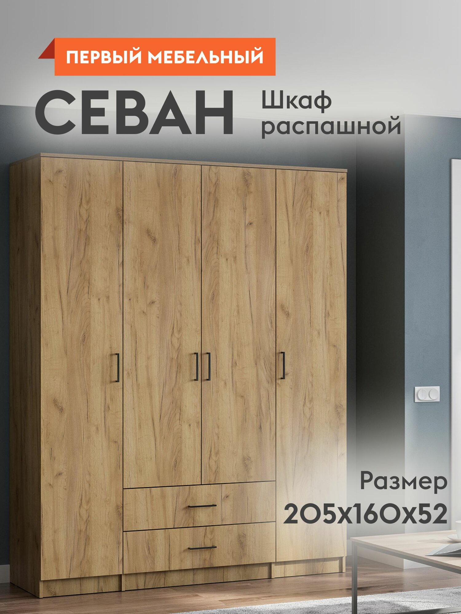 Отзывы на Шкаф распашной для одежды, 4 дв Севан, с ящиками, с полками, продольная штанга, 160.1х52х205 см, Дуб золотой