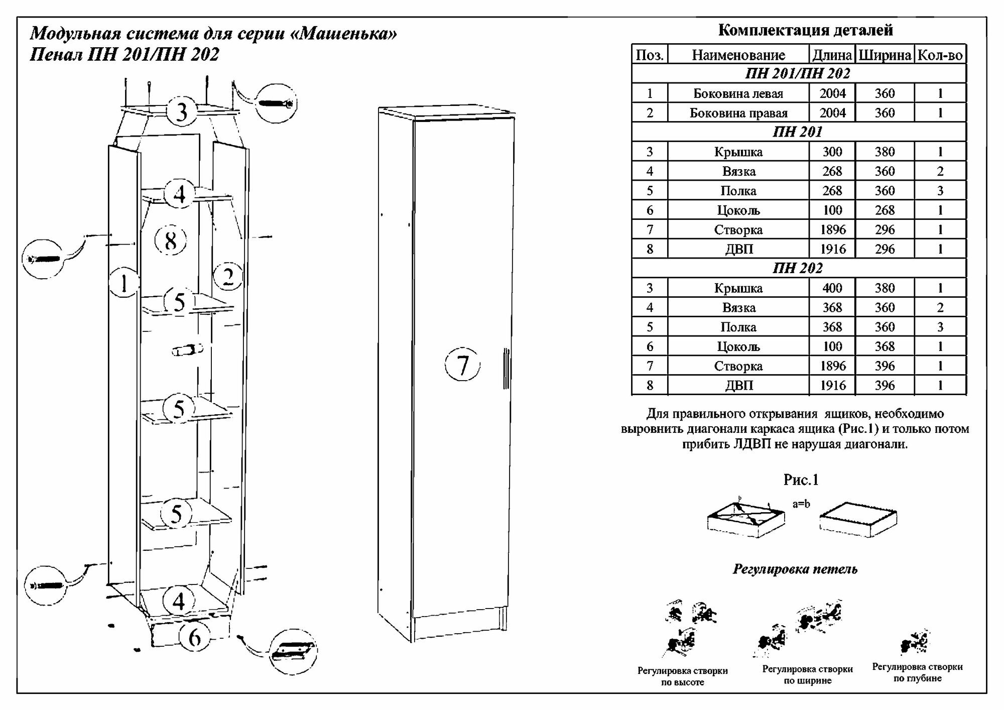 Отзывы на Прихожая машенька ПН 202 пенал (0,4х2,02х0,376) фасад белфорт/корпус венге