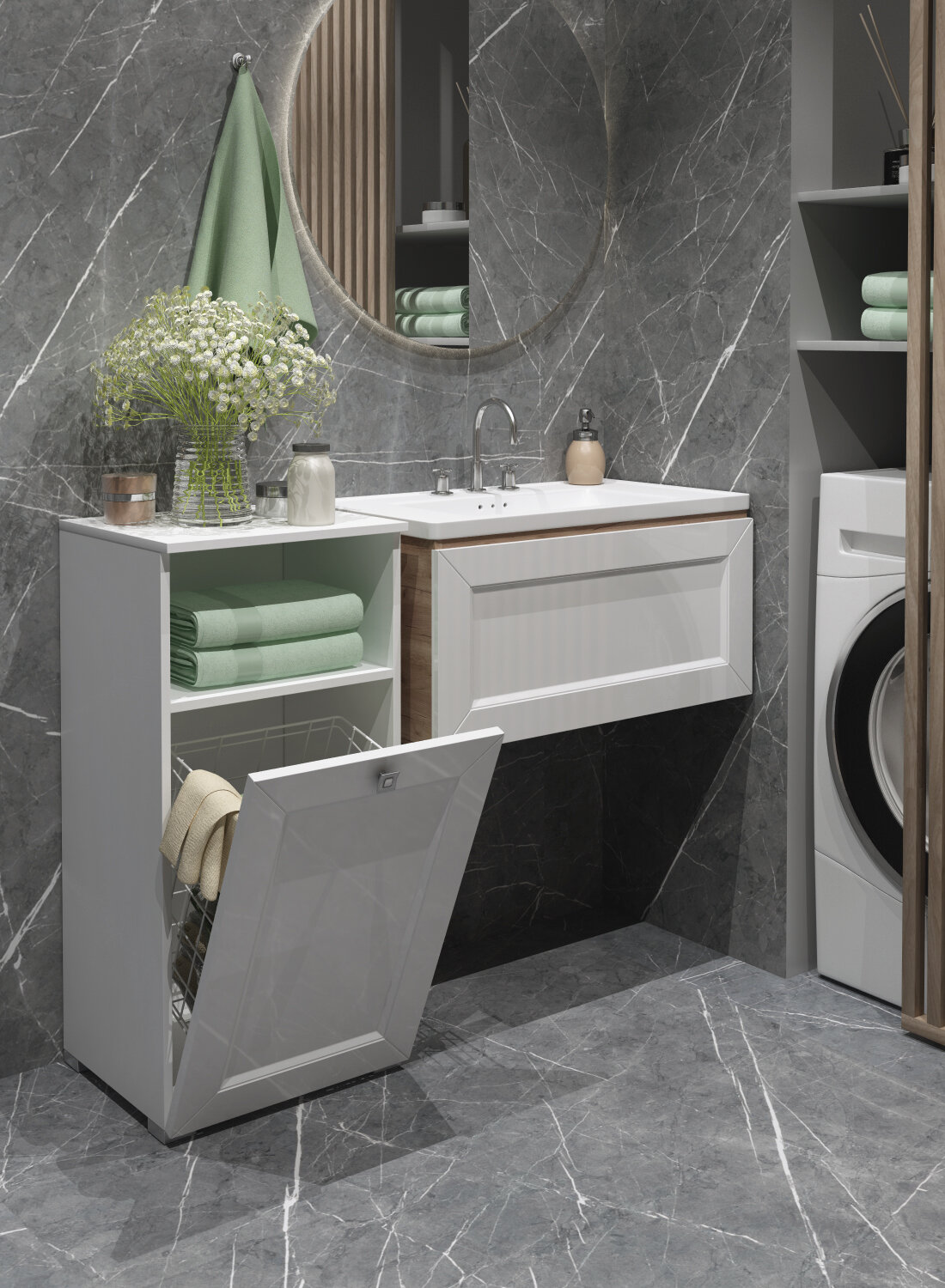 Шкаф для ванной комнаты, REGENT style, Пенал Гранд 1корзина 1ниша, белый, 83,6*40*35 информация: