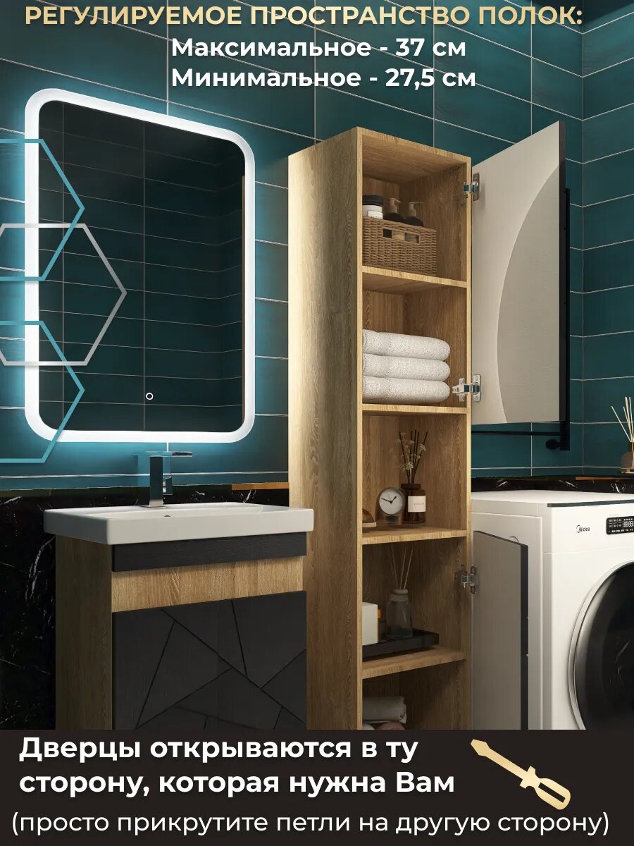Отзывы на Шкаф-пенал напольный "Клэо-40", графит под дерево, 180х40х32, с ножками, 5 полок