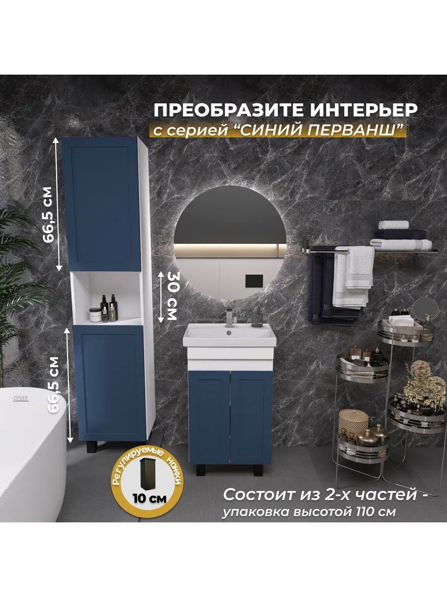 Отзывы на Шкаф-пенал напольный "Прованс-40", синий перванш, 180х40х32, с ножками, 5 полок
