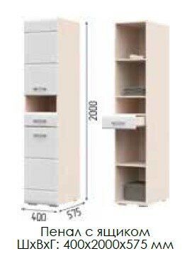 Пенал с ящиком «Симба» (Дуб Белфорт/Белый глянец) 40х57х200 11 310 ₽