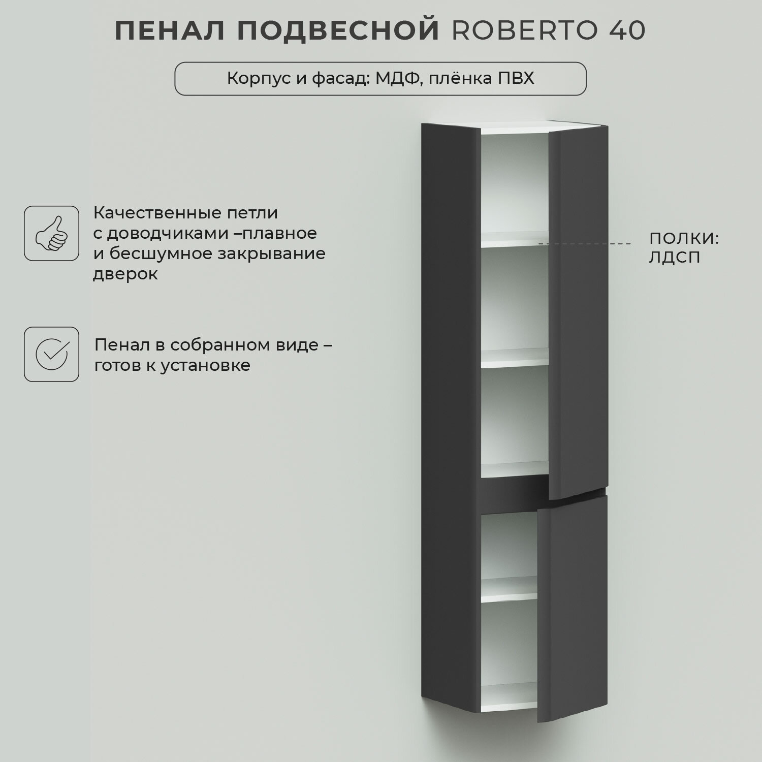 Шкаф пенал для ванной Roberto 40 400х350х1550 графит правый навесной информация: