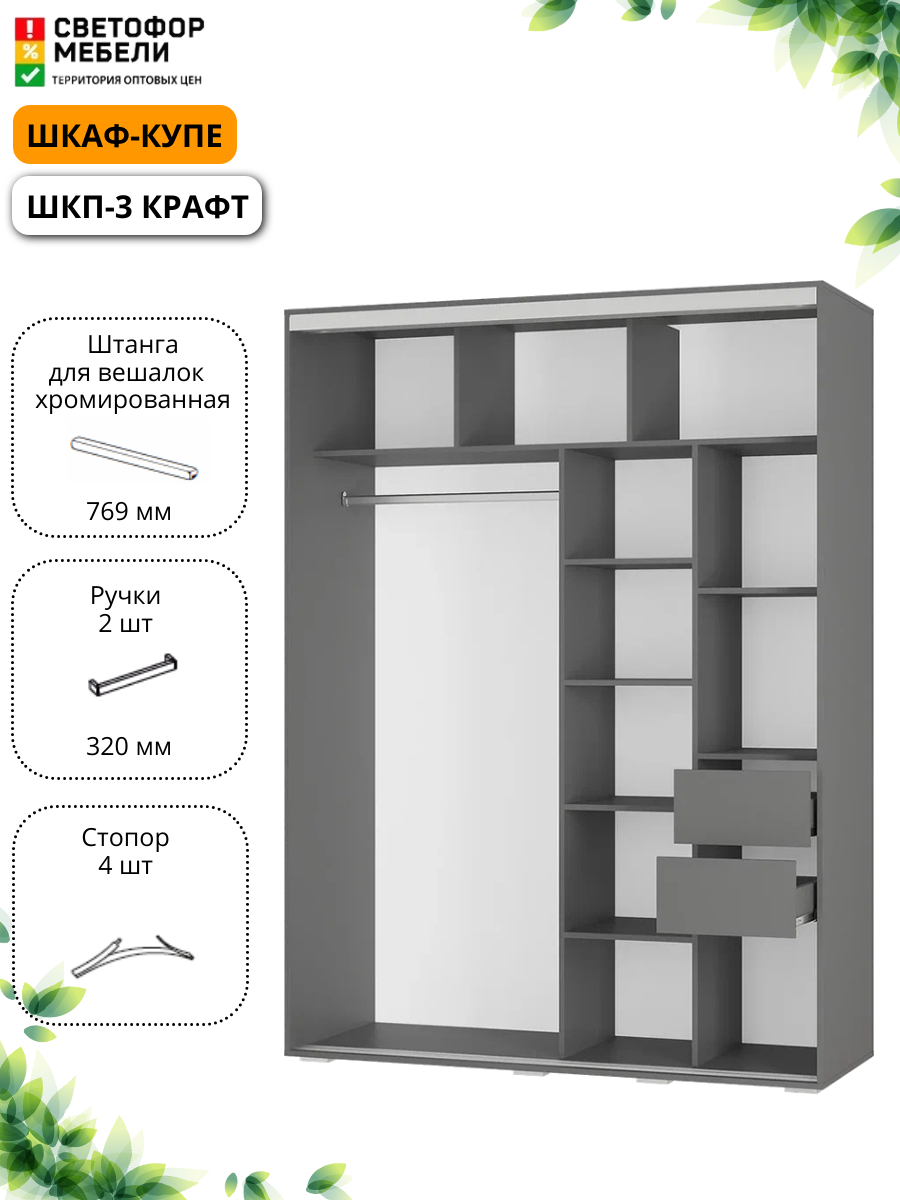 10 цен на Шкаф-купе Мебельный Рай ШКП-3 Крафт, Графит, раздвижные дверцы со стеклом и зеркалом, графит, 1602х2176х594