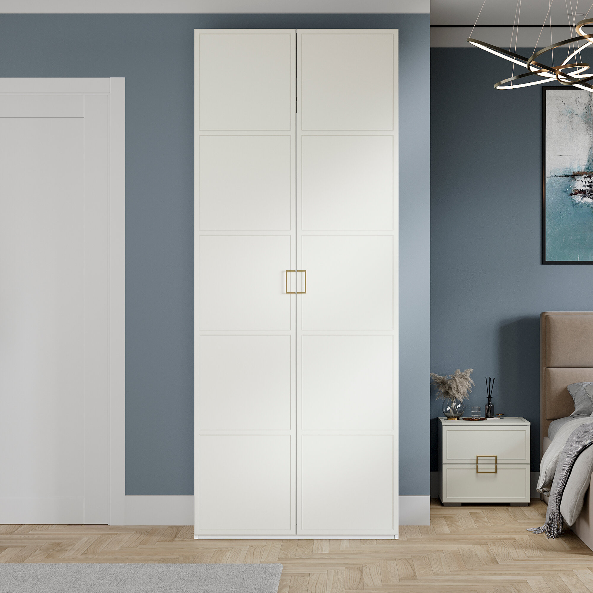 Шкаф распашной Калифорния-2 с антресолью Сумеречный Голубой для одежды двухдверный 70*210*40 Мегамебель