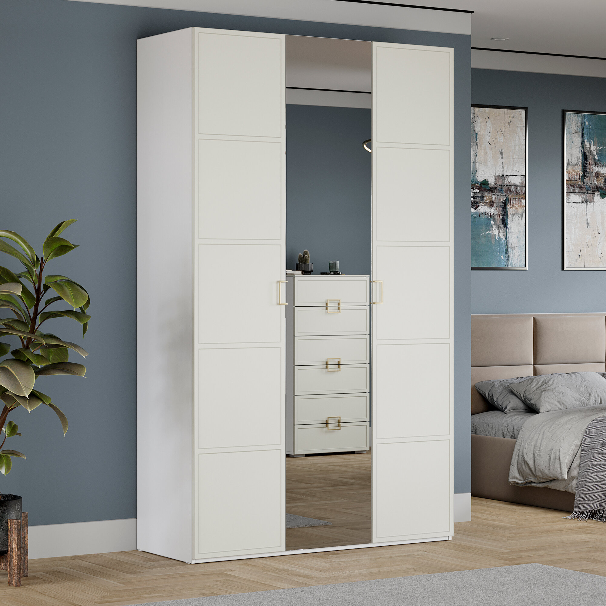 Шкаф распашной МебельЛэнд24 Марсель - 3 Кашемир с антресолью 140x50x270 бежевый для одежды трехдверный