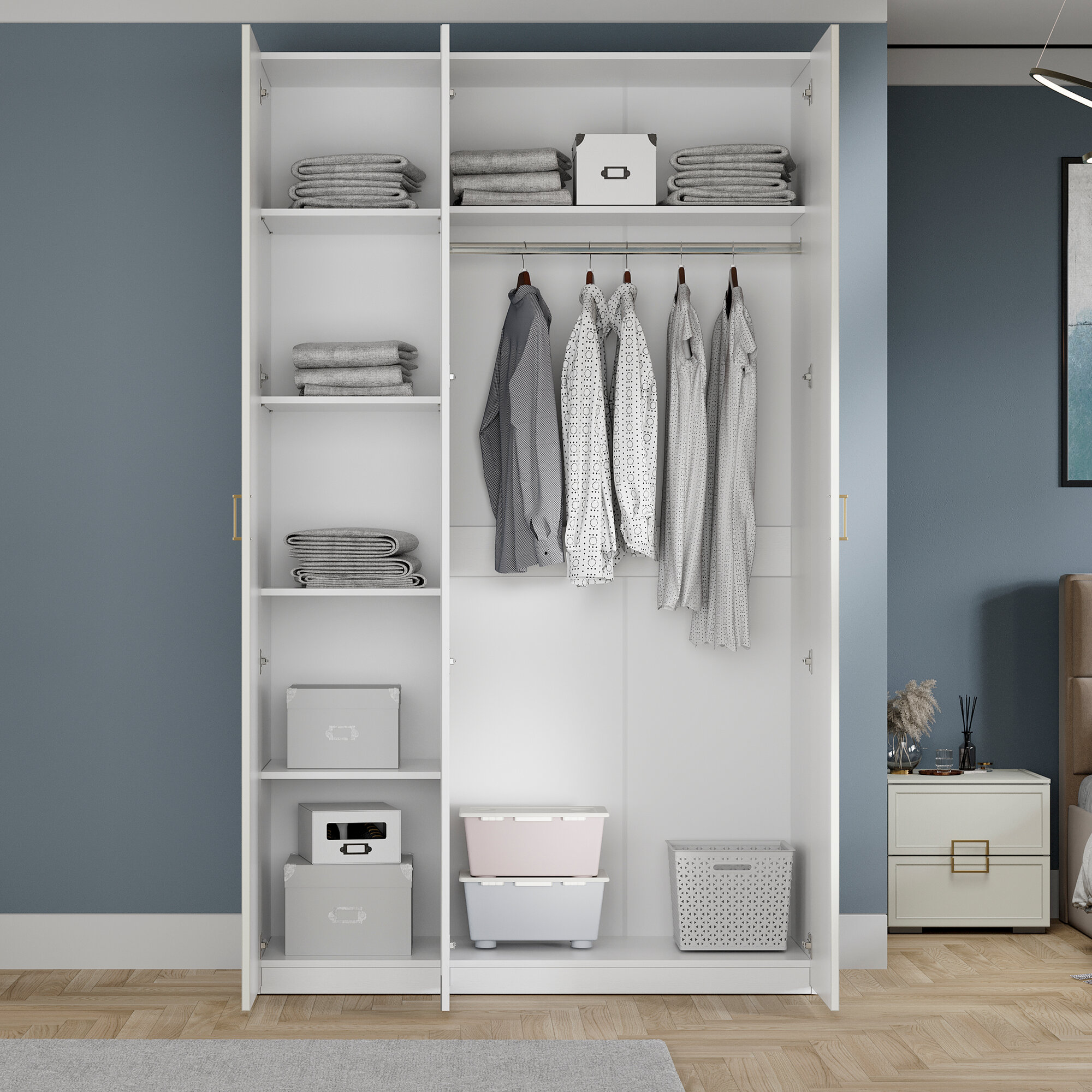 Шкаф для одежды распашной Нонтон Луас, 120 см, 7 полок и штанга, белый глянец