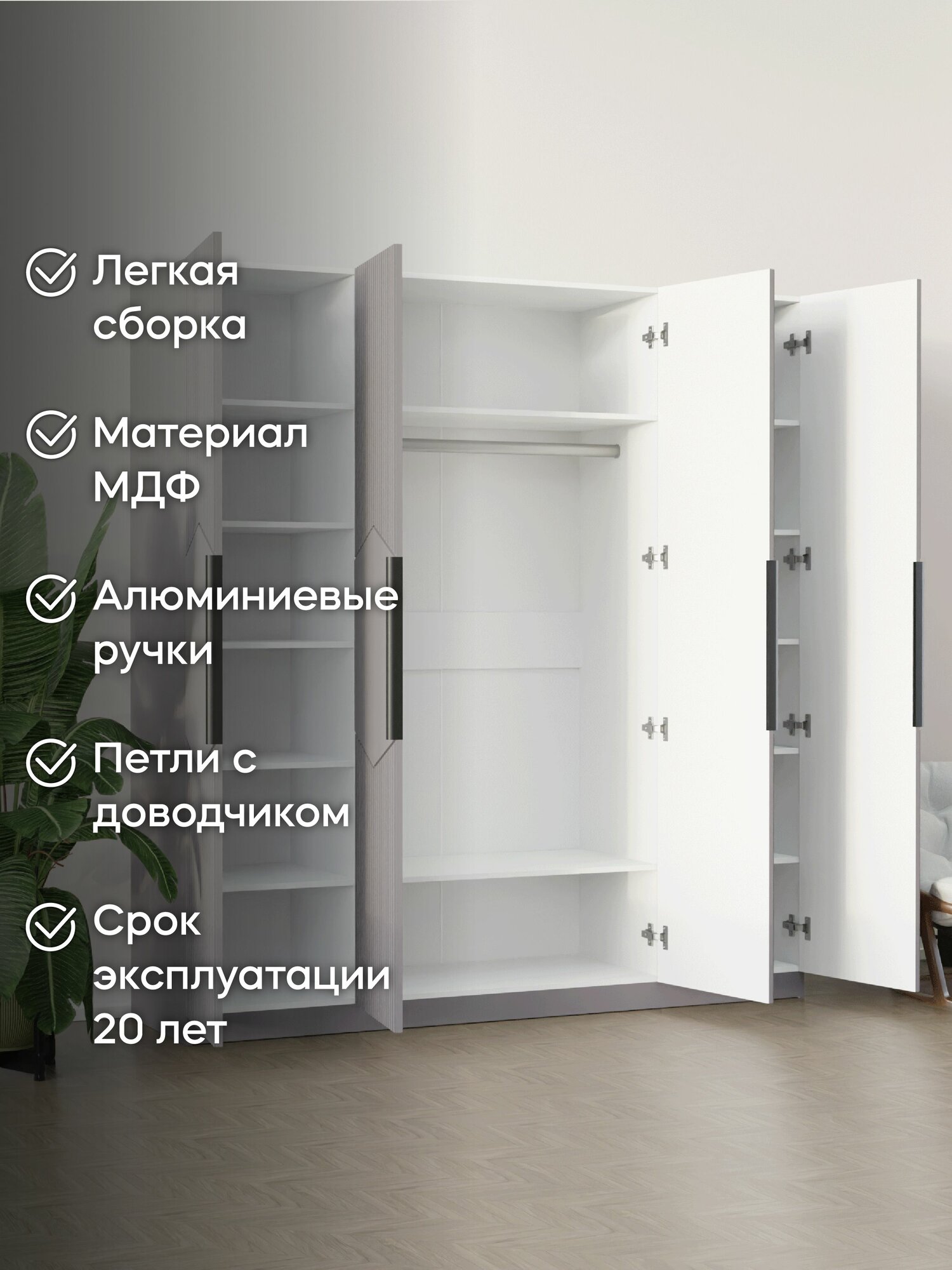 LAERA Шкаф для одежды четырехдверный распашной с полками сити риолит информация: