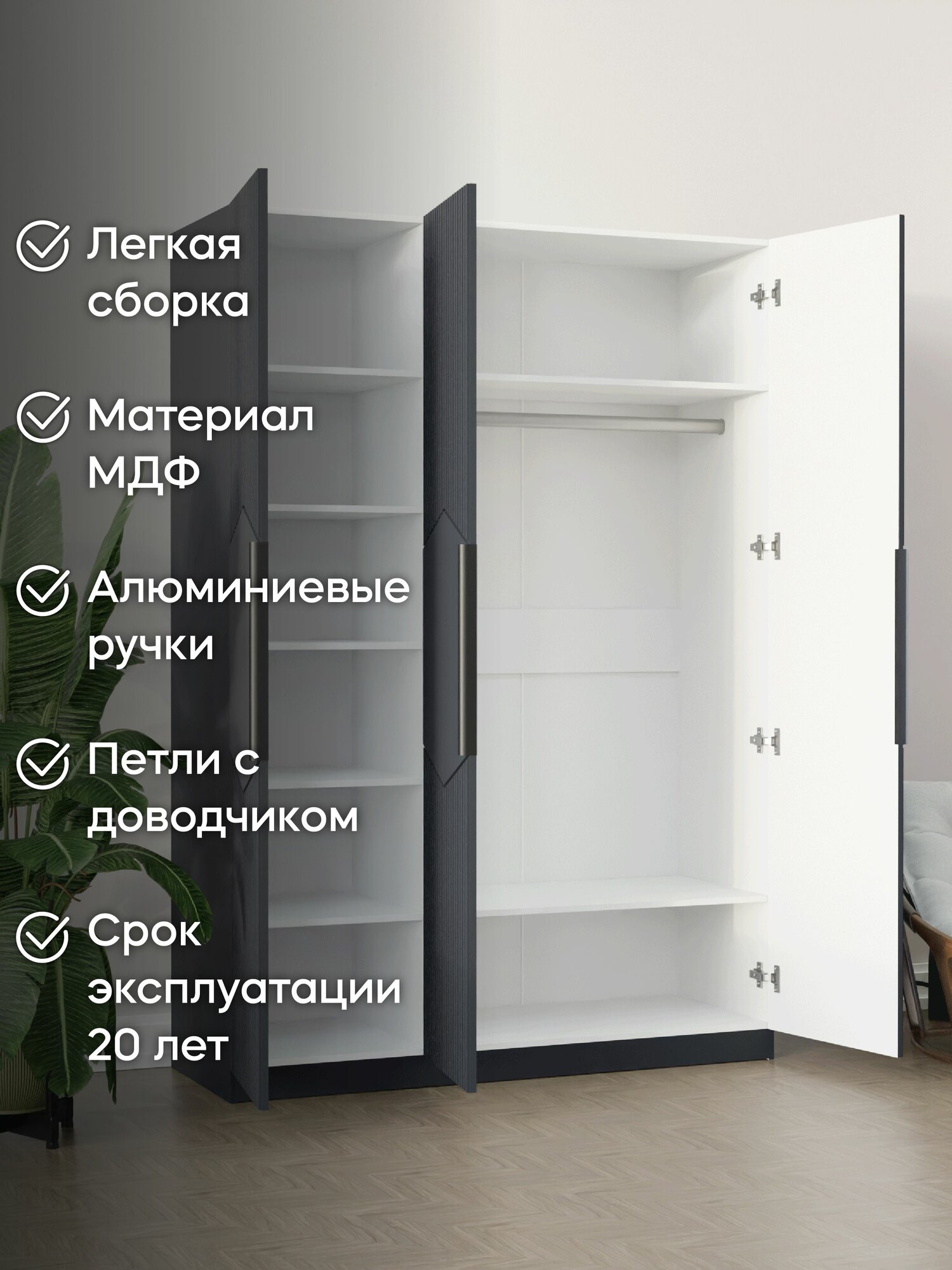 Отзывы на LAERA Шкаф для одежды трехдверный распашной с полками сити графит