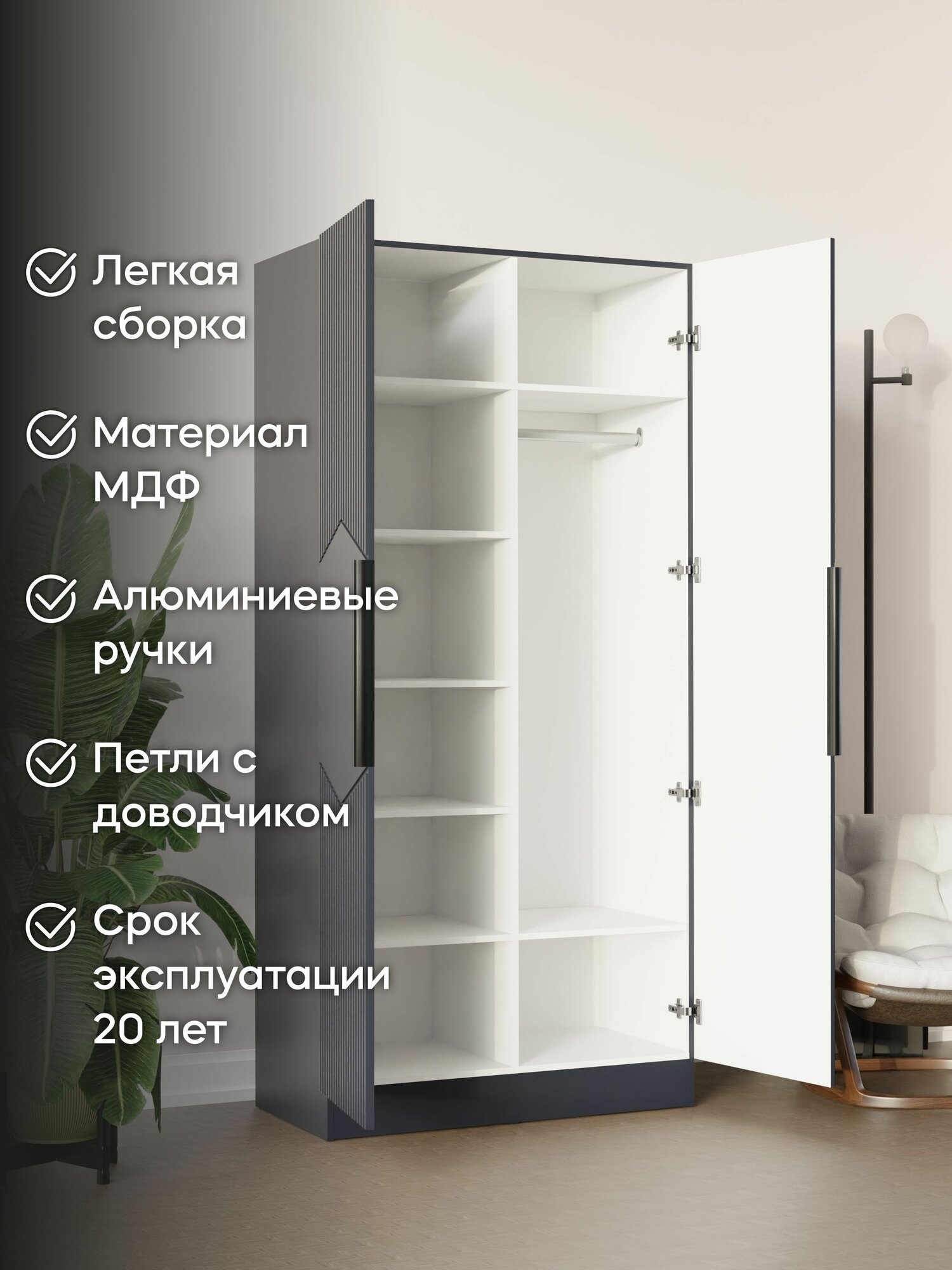 LAERA Шкаф для одежды двухдверный распашной с полками 90 см графит информация: