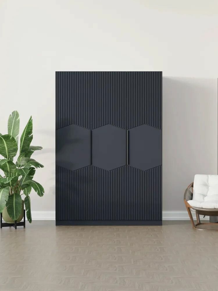 LAERA Шкаф для одежды трехдверный распашной с полками сити графит 44 000 ₽