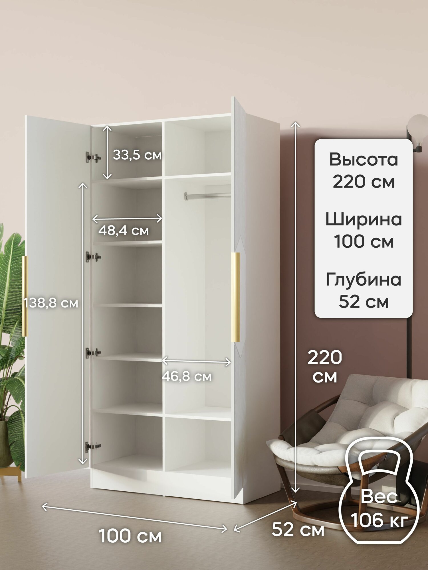 Отзывы на LAERA Шкаф для одежды двухдверный распашной с полками сити белый