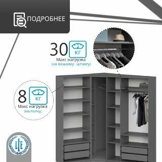 Отзывы на Угловой шкаф распашной для одежды графит серый Лувр, модульный, с 4-мя выдвижными ящиками и 17-ю полками