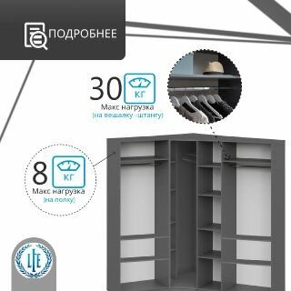 Отзывы на Угловой шкаф распашной для одежды графит серый Лувр, модульный, с 15-ю полками