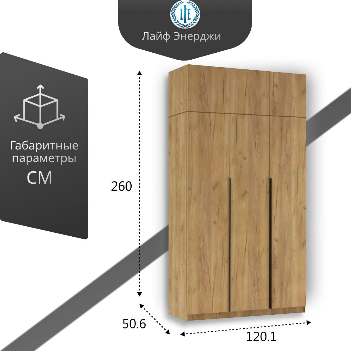 Шкаф распашной Лувр дуб золотой, 3-х дверный, с доводчиками, выдвижными ящиками, полками, штангой и антресолью 120.1х50.6х260 см информация: