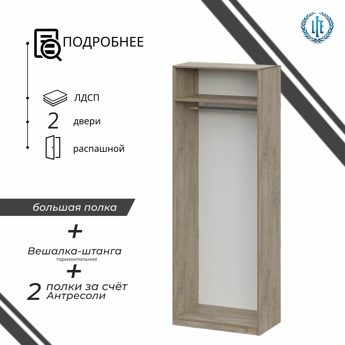 10 цен на Шкаф распашной для одежды Лувр эндгрейн/меланж(капучино), 2-х дверный, модульный, с доводчиками и антресолью, 80.1х50.6х260 см
