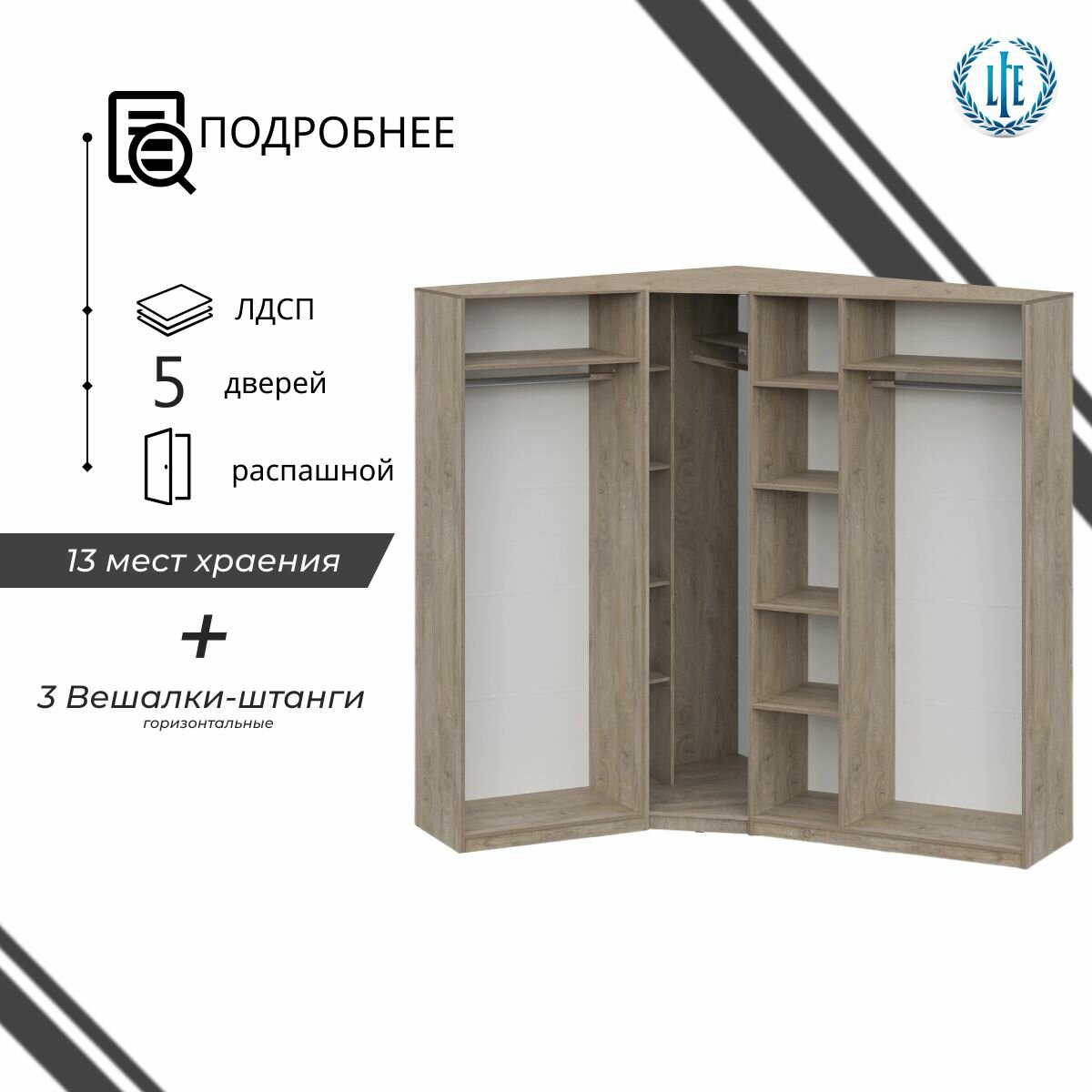 Угловой шкаф распашной для одежды модульный Лувр эндгрейн/меланж(капучино) информация: