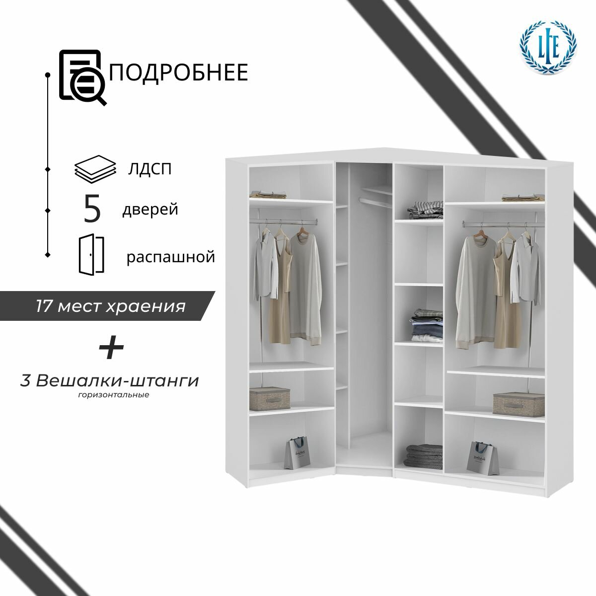 Угловой шкаф распашной для одежды белый текстурный Лувр, модульный, с 15-ю полками информация: