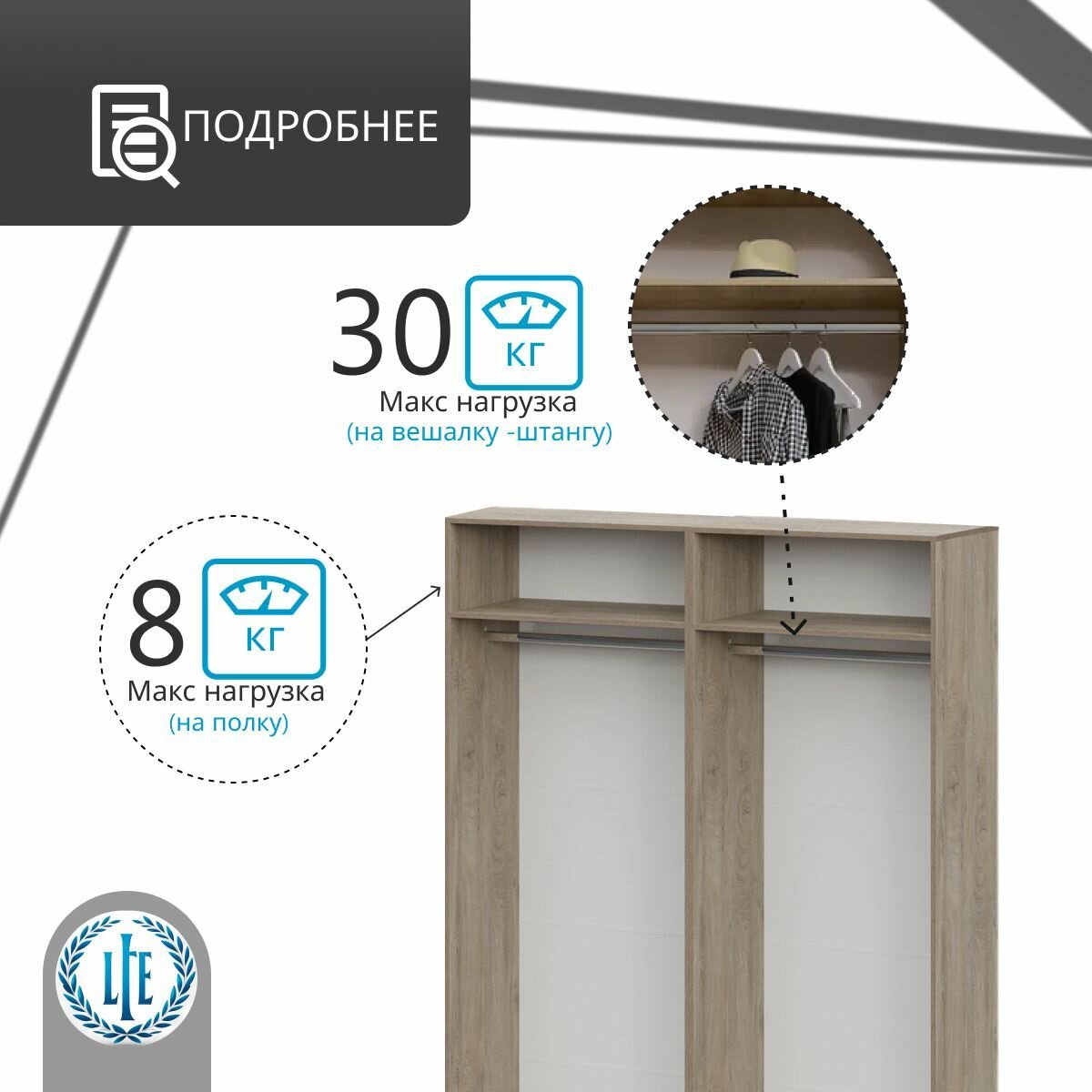 Шкаф распашной для одежды Лувр белый текстурный, 3-х дверный, с доводчиками, полками и штангой, 120.1х50.6х221.6 см 13 951 ₽