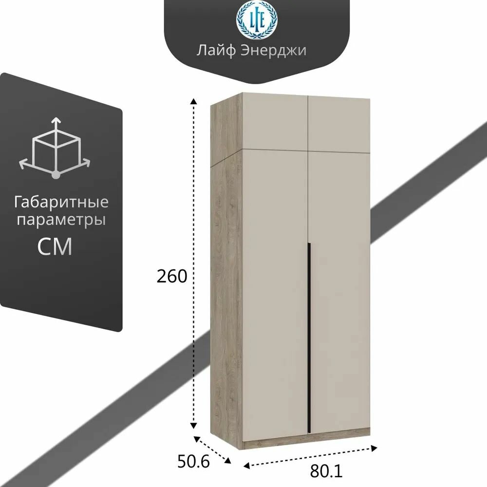 10 цен на Шкаф распашной для одежды Лувр эндгрейн/меланж(капучино), 2-х дверный, модульный, с доводчиками, выдвижными ящиками и антресолью, 80.1х50.6х260 см