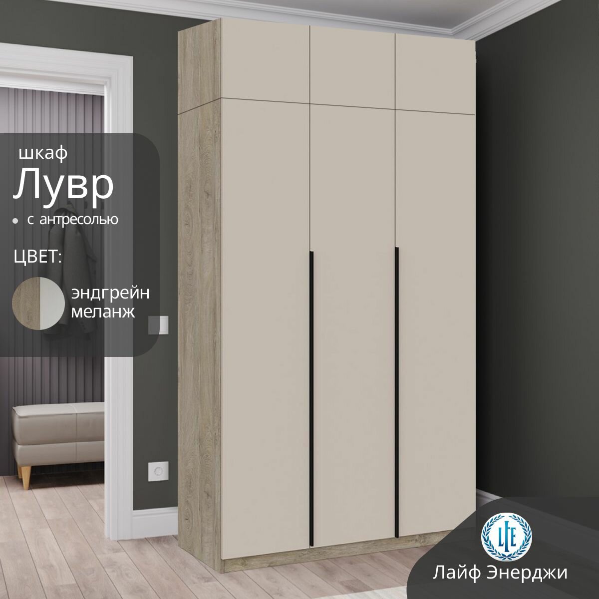 Отзывы на Шкаф распашной для одежды Лувр эндгрейн/меланж(капучино), 3-х дверный, модульный, с доводчиками, полками, штангой и антресолью 120.1х50.6х260 см