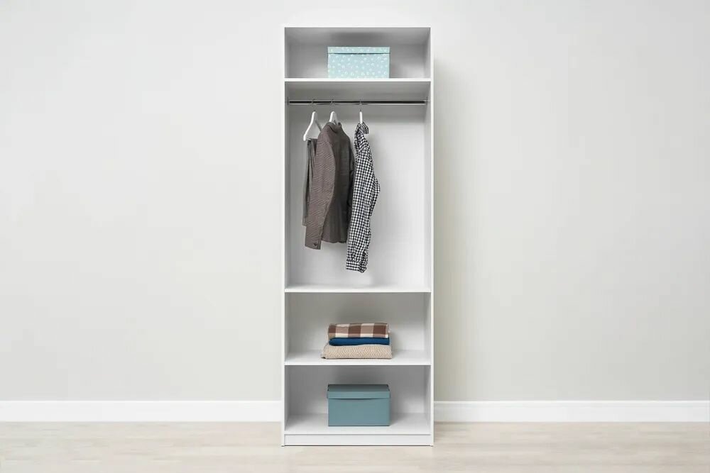 Шкаф для одежды распашной Нонтон Луас, 120 см, 7 полок и штанга, белый глянец