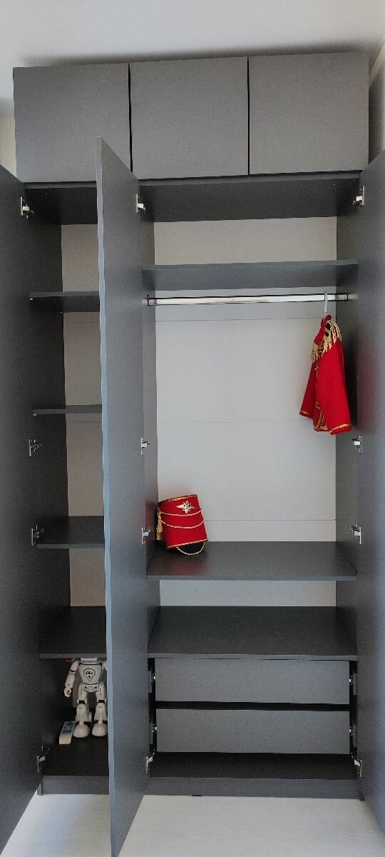 Отзывы на Шкаф распашной для одежды Лувр серый графит, 3-х дверный, модульный, с доводчиками, полками, штангой, выдвижными ящиками и антресолью, 120.1х50.6х260 см