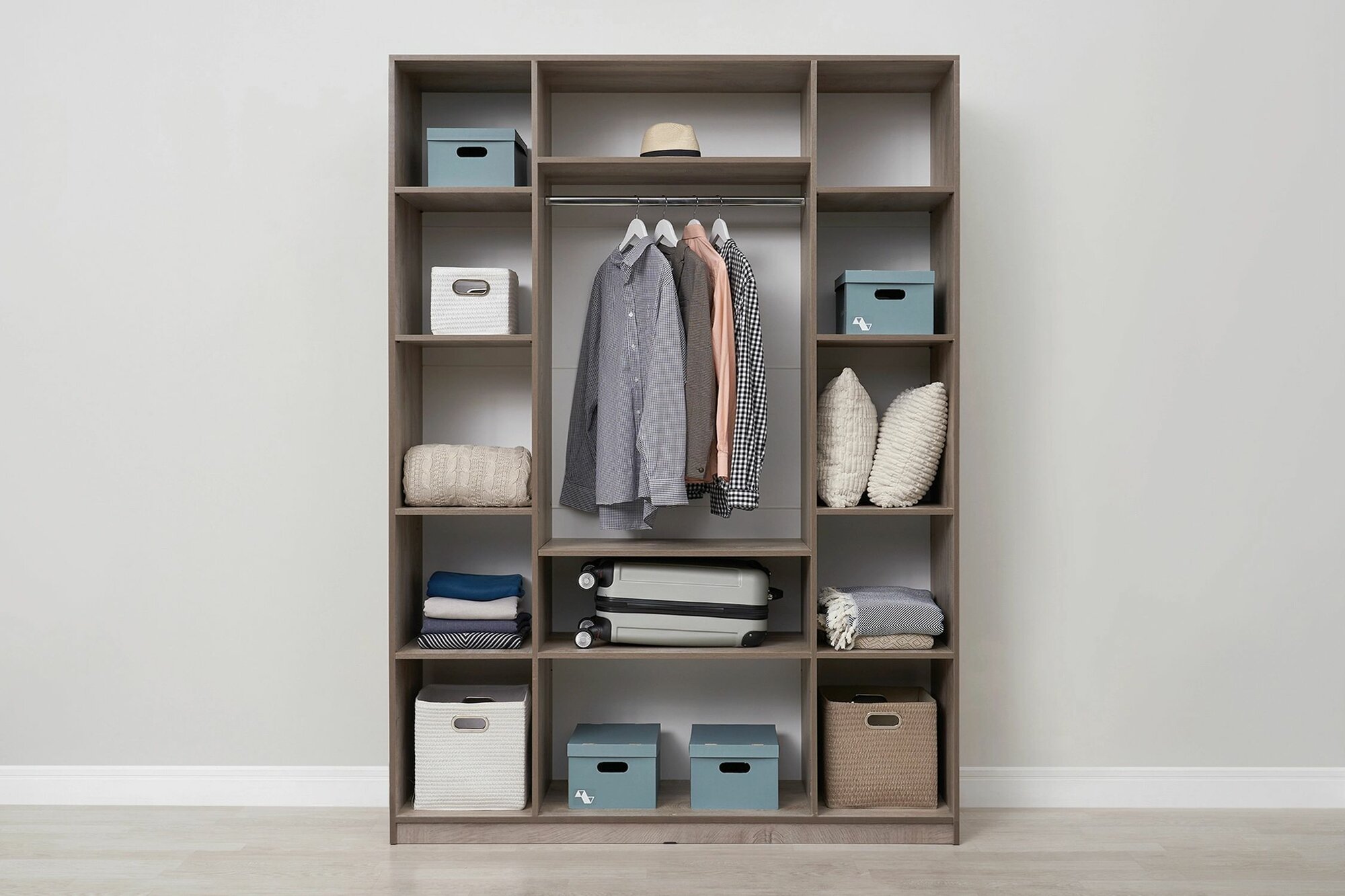 Шкаф для одежды распашной Нонтон Луас, 2 шт, 320 см, 20 полок и 2 штанги, эндгрейн / меланж
