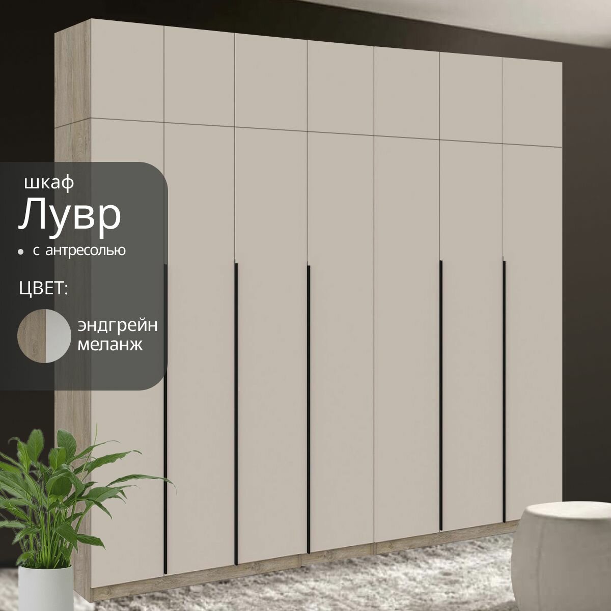 10 цен на Шкаф распашной для одежды Лувр эндгрейн/меланж(капучино), 7-ми дверный, модульный, с доводчиками, полками, штангой и антресолью, 280.2х50.6х260 см