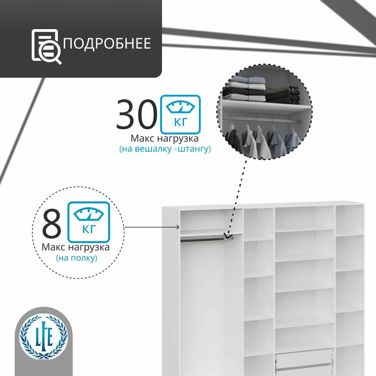 Отзывы на Шкаф распашной для одежды Лувр белый/белый глянец, 6-ти дверный, модульный, с доводчиками, 14-ю полками, штангой, 2-мя выдвижными ящиками и антресолью, 240.2х50.6х260 см