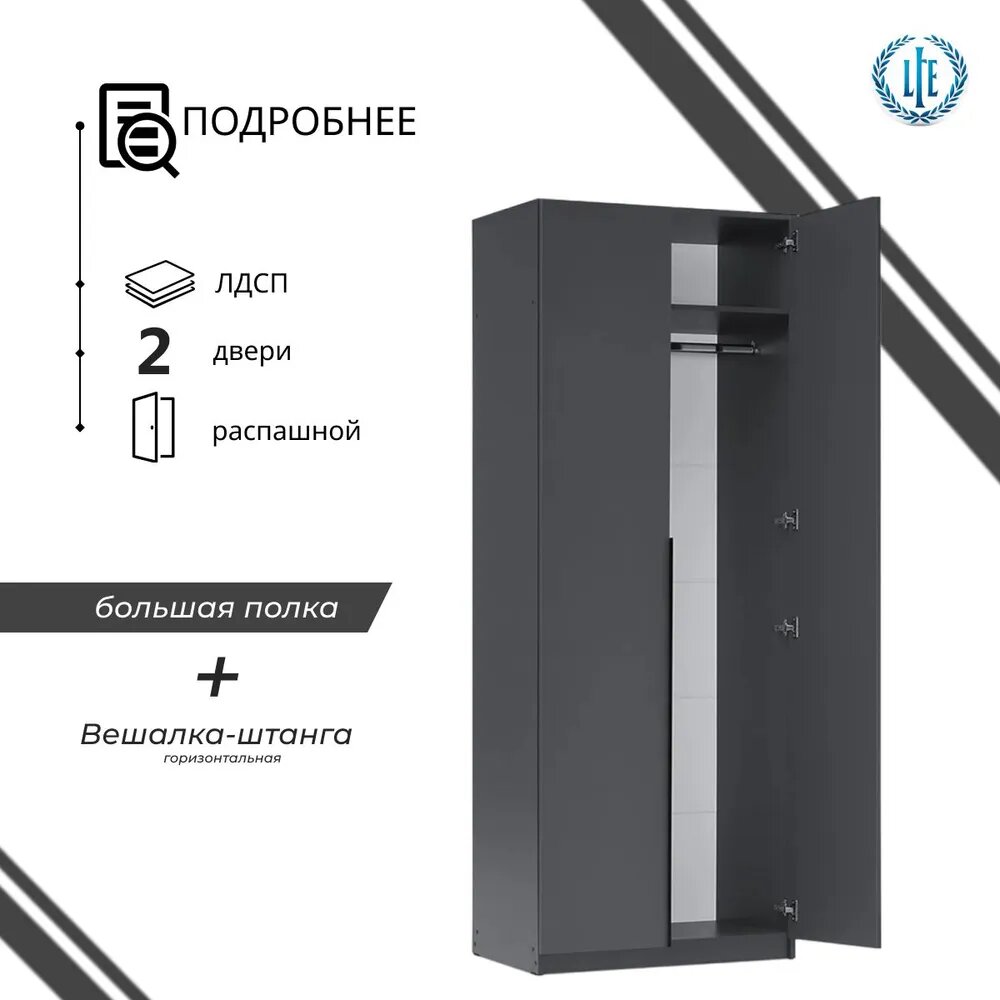 Шкаф распашной для одежды Лувр, 2-х дверный, серый графит, с доводчиками, 80.1х50.6х221.6 см информация: