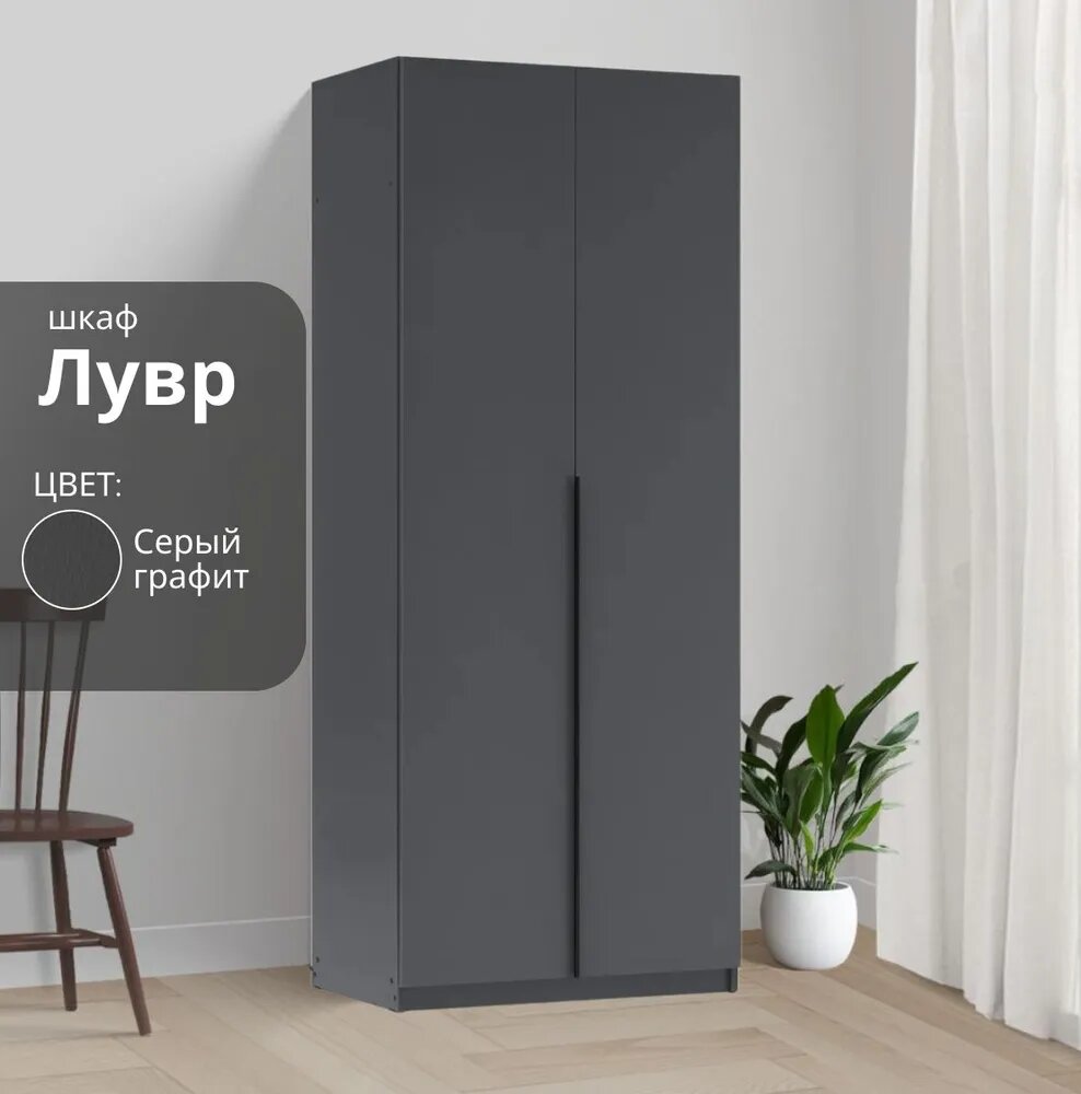 Отзывы на Шкаф распашной для одежды Лувр, 2-х дверный, серый графит, с доводчиками, 80.1х50.6х221.6 см