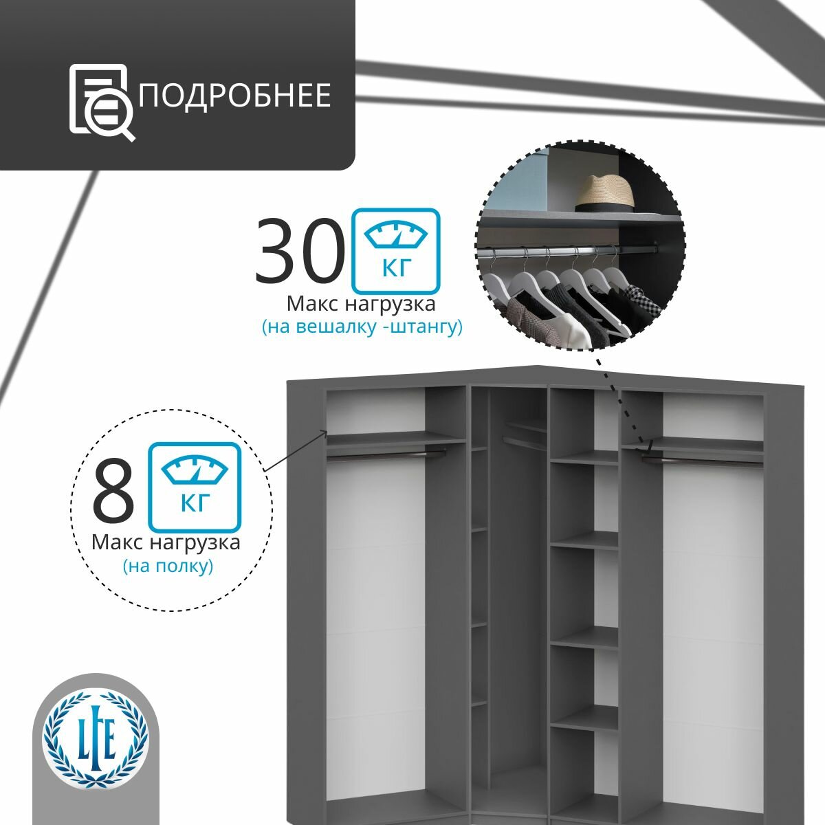 10 цен на Угловой шкаф распашной для одежды модульный Лувр графит серый