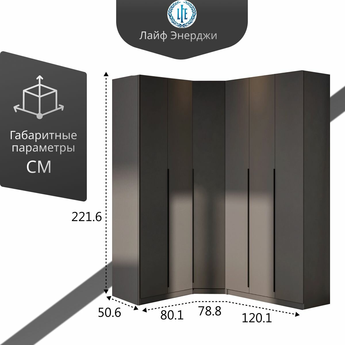 Угловой шкаф распашной для одежды модульный Лувр графит серый информация: