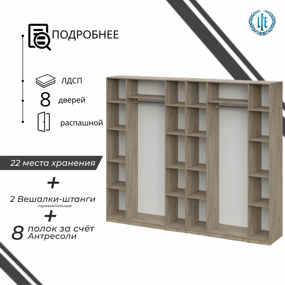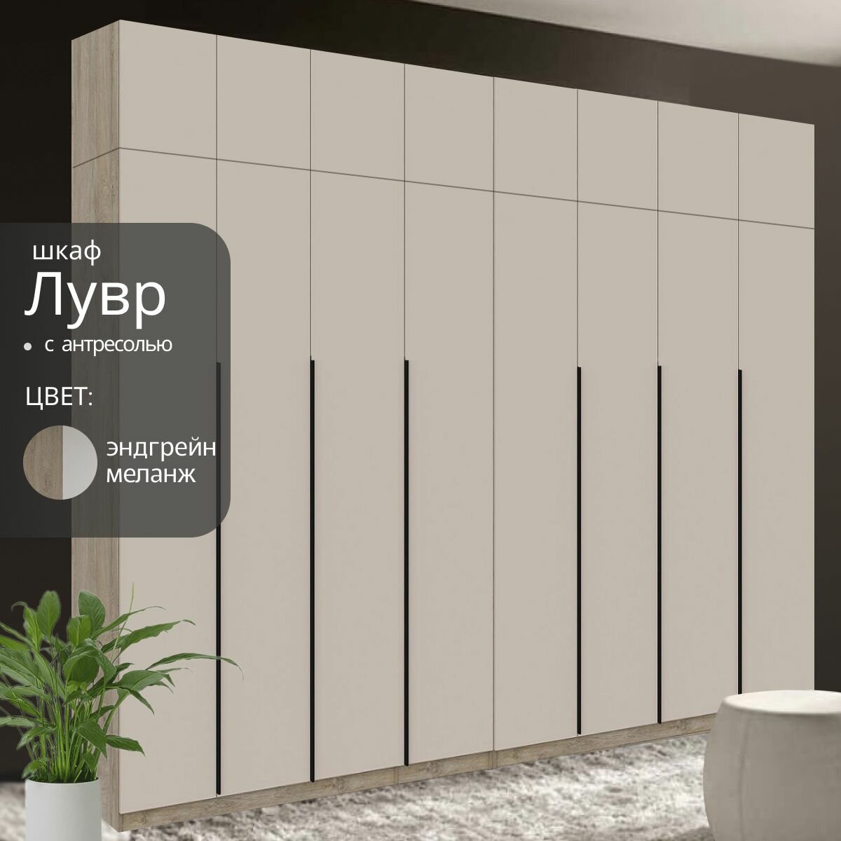 10 цен на Шкаф распашной для одежды Лувр эндгрейн/меланж(капучино), 8-ми дверный, модульный, с доводчиками, полками, штангой и антресолью, 320.2х50.6х260 см