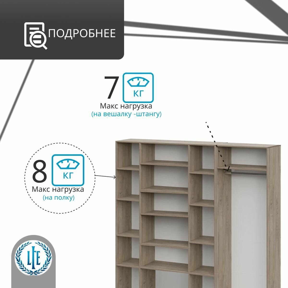 10 цен на Шкаф распашной для одежды Лувр эндгрейн/меланж(капучино), 6-ти дверный, модульный, с доводчиками, 14-ю полками, штангой и антресолью, 240.2х50.6х260 см