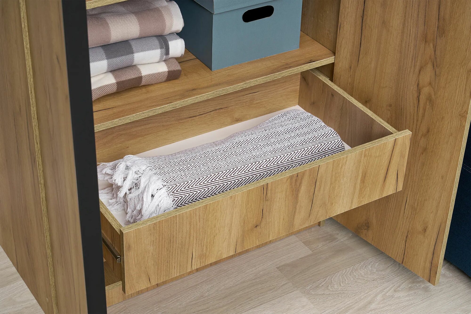 Шкаф распашной для одежды Лувр дуб золотой, 2-х дверный, с доводчиками и выдвижными ящиками, 80.1х50.6х221.6х см информация: