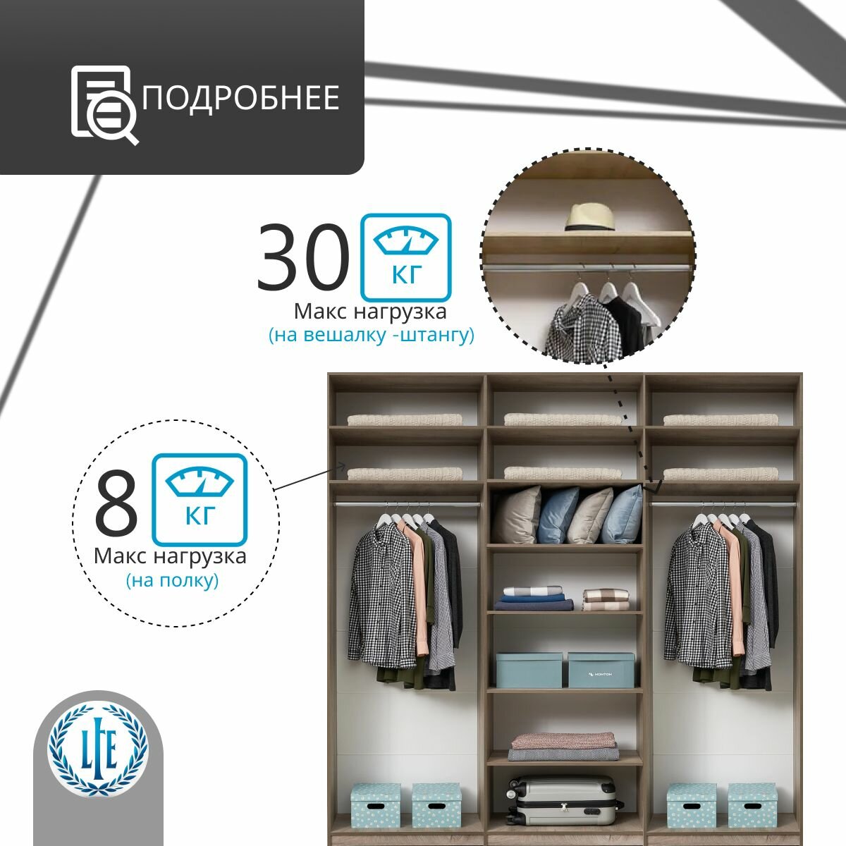 Шкаф распашной для одежды Лувр серый графит, 6-ти дверный, модульный, с доводчиками, 14-ю полками и штангой, 240.2х50.6х221,6 см 36 222 ₽