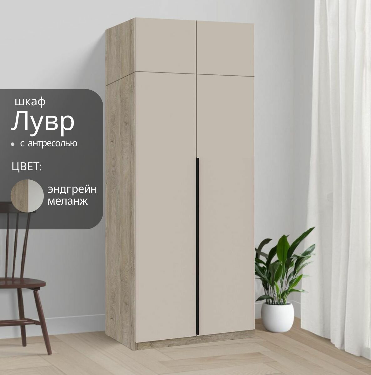 Шкаф распашной для одежды Лувр эндгрейн/меланж(капучино), 2-х дверный, модульный, с доводчиками и антресолью, 80.1х50.6х260 см 14 113 ₽