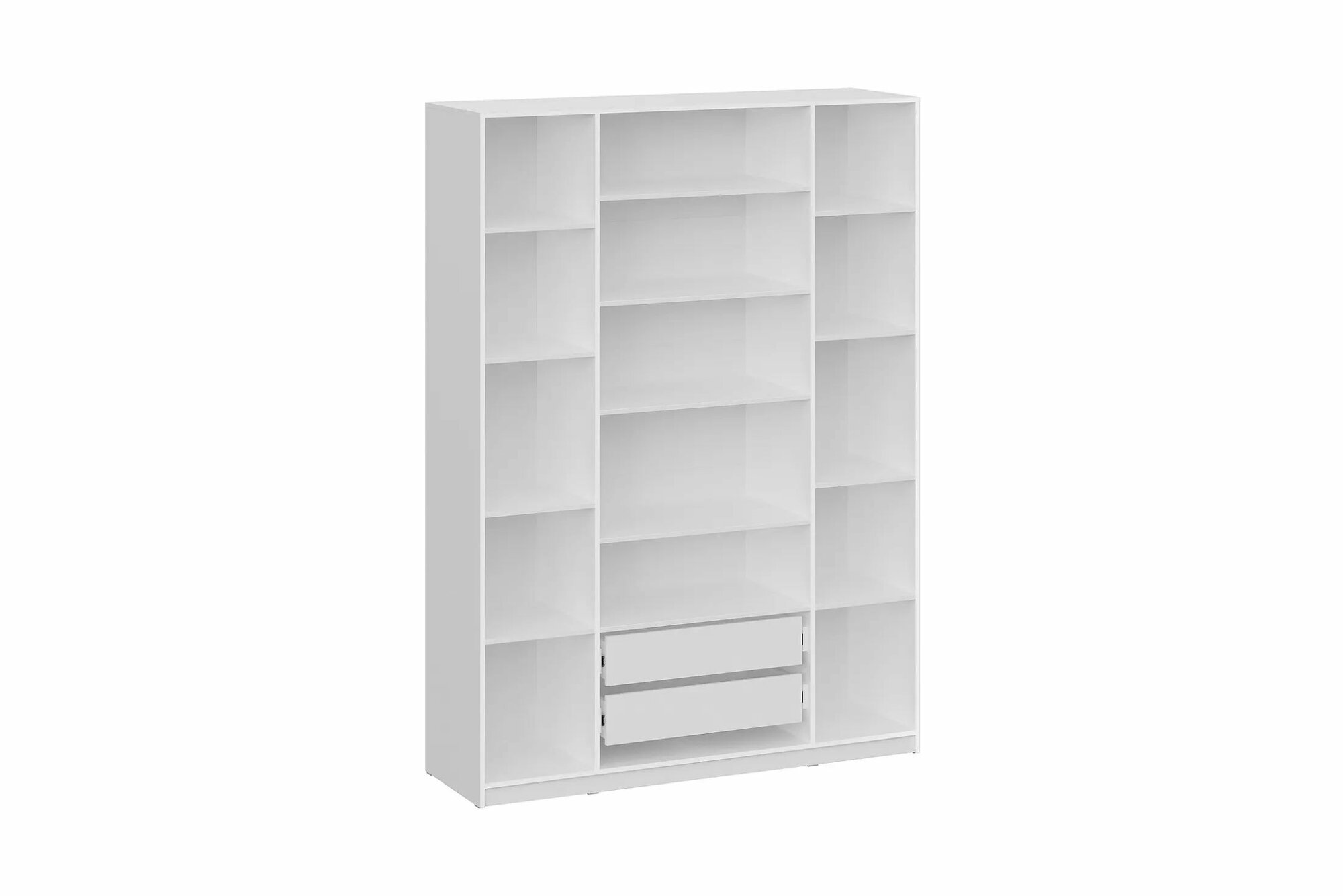 Шкаф распашной 3-х дверный Лувр белый текстурный, с доводчиками, 9-ю полками и выдвижными ящиками, 120.1х50.6х221.6 см 17 434 ₽
