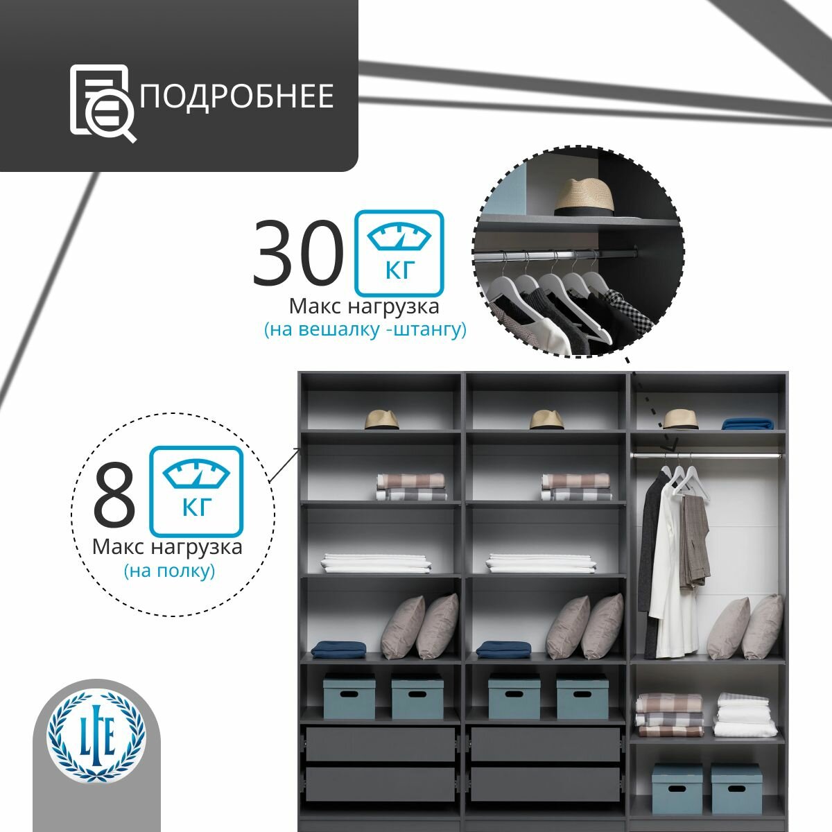 10 цен на Шкаф для одежды распашной Лувр графит серый, 6-ти дверный, модульный, с доводчиками, 4-мя ящиками, 16-ю полками, штангой и антресолями, 240.2х50.6х260 см