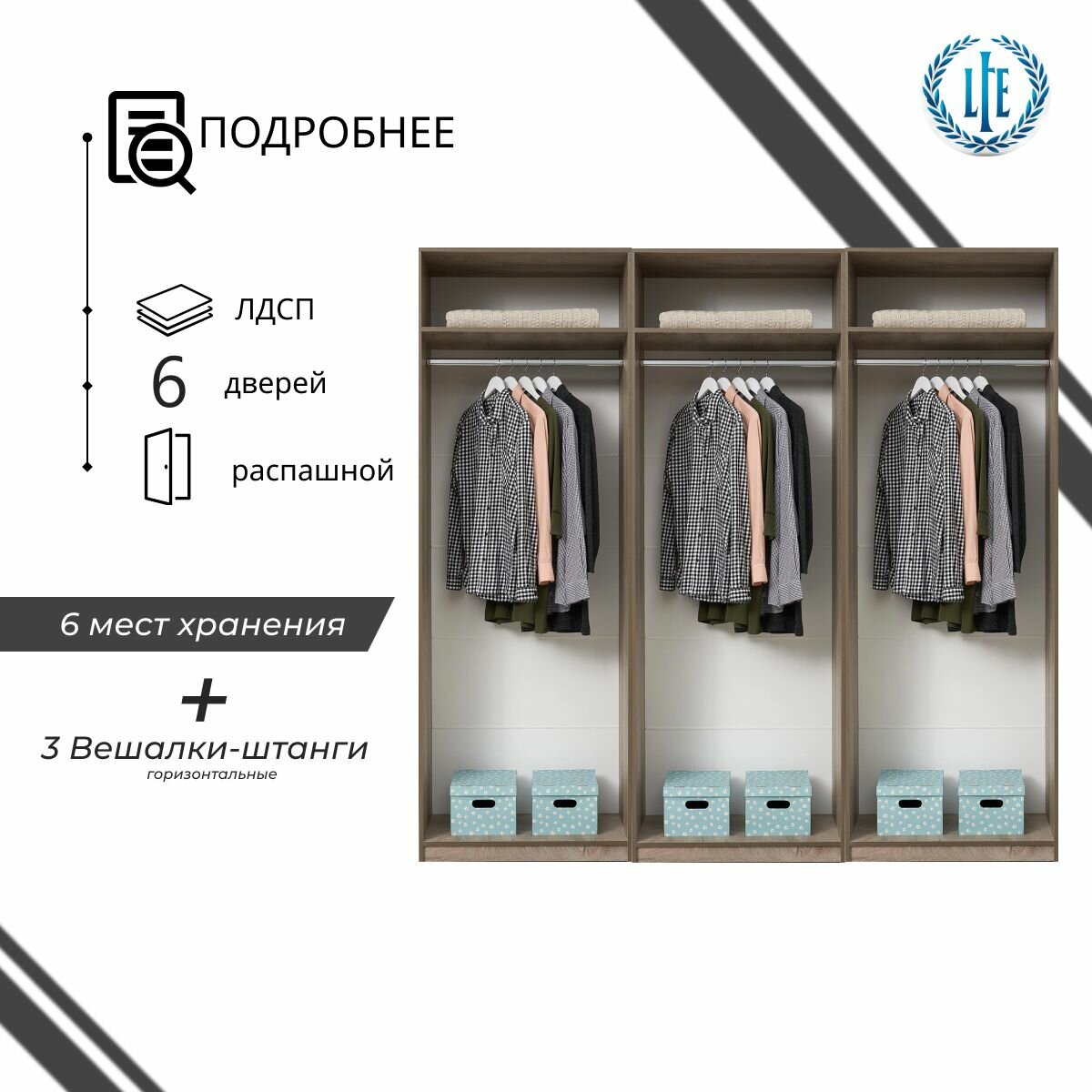 0 отзывов, средняя оценка 0. Чтобы купить «Шкаф для одежды распашной Лувр эндгрейн/меланж(капучино), 6-ти дверный, модульный, с доводчиками, полками и 3-мя штангами, 240.2х50.6х221.6 см» по лучшей цене мы сканируем авито, алиэкспресс, маркет, озон, савеловский, плеер, горбушку, беру, официальные сайты и находим минимальную. Администрация не несет ответсвенность актуальность цен на Шкаф для одежды распашной Лувр эндгрейн/меланж(капучино), 6-ти дверный, модульный, с доводчиками, полками и 3-мя штангами, 240.2х50.6х221.6 см, более подробно узнавайте на сайте магазина.