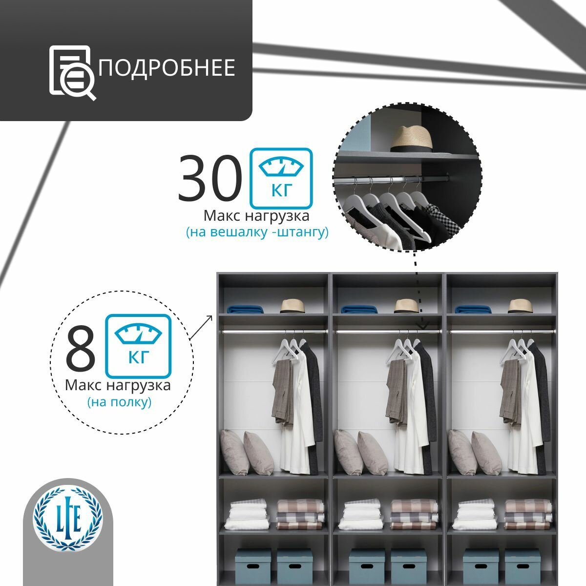 Отзывы на Шкаф для одежды распашной Лувр графит серый, 6-ти дверный, модульный, с доводчиками, 9-ю полками и 3-мя штангами, 240.2х50.6х221.6 см
