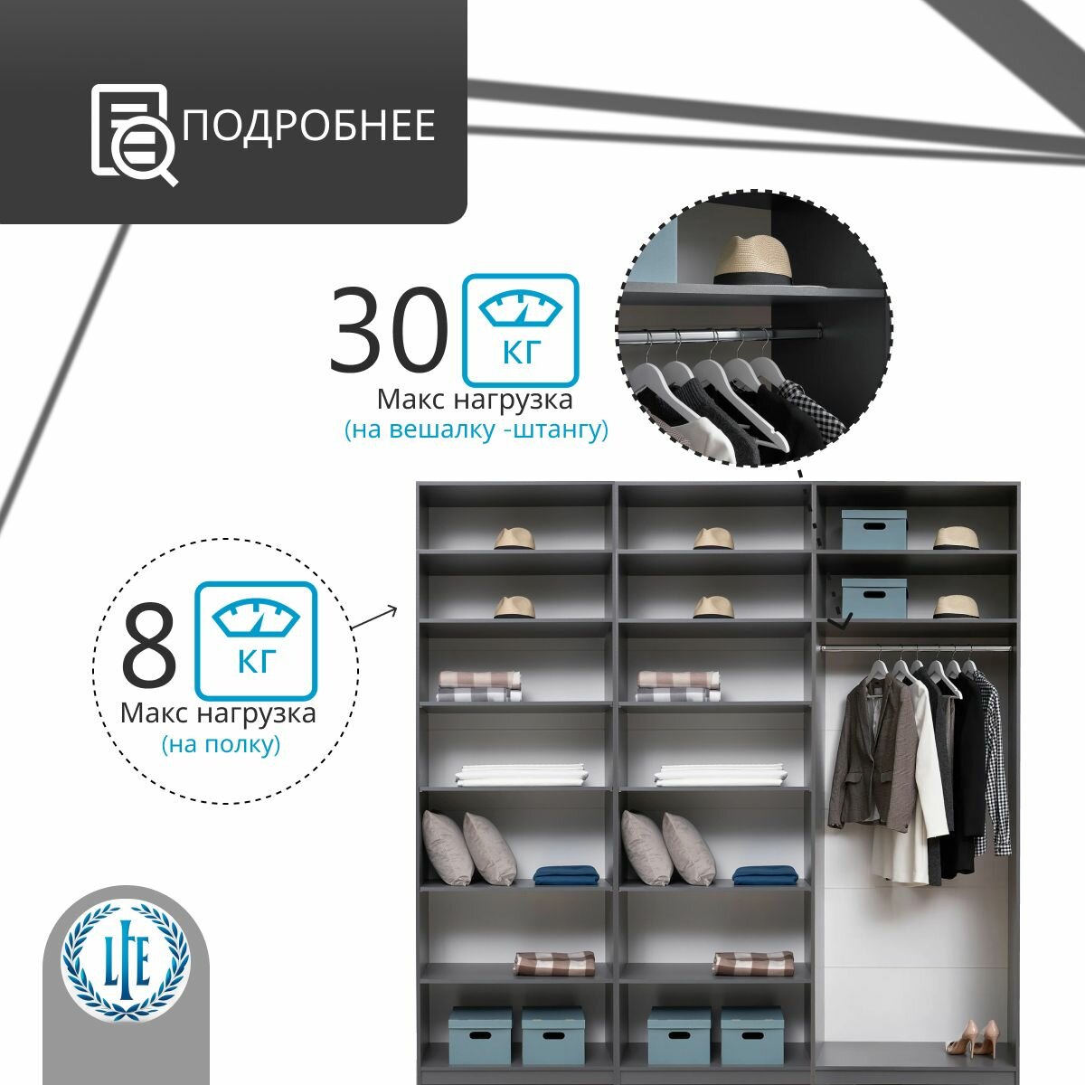 Шкаф распашной для одежды Лувр серый графит, 6-ти дверный, модульный, с доводчиками, 14-ю полками и штангой, 240.2х50.6х221,6 см 36 222 ₽