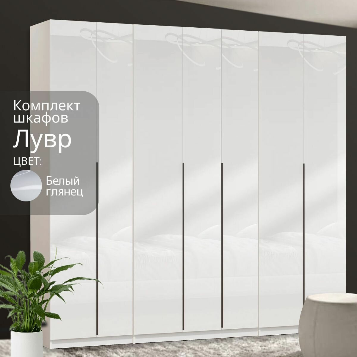 Отзывы на Шкаф для одежды распашной Лувр белый/белый глянец, 7-ми дверный, модульный, с доводчиками, 11-ю полками и 2-мя штангами, 280.3х50.6х221.6 см