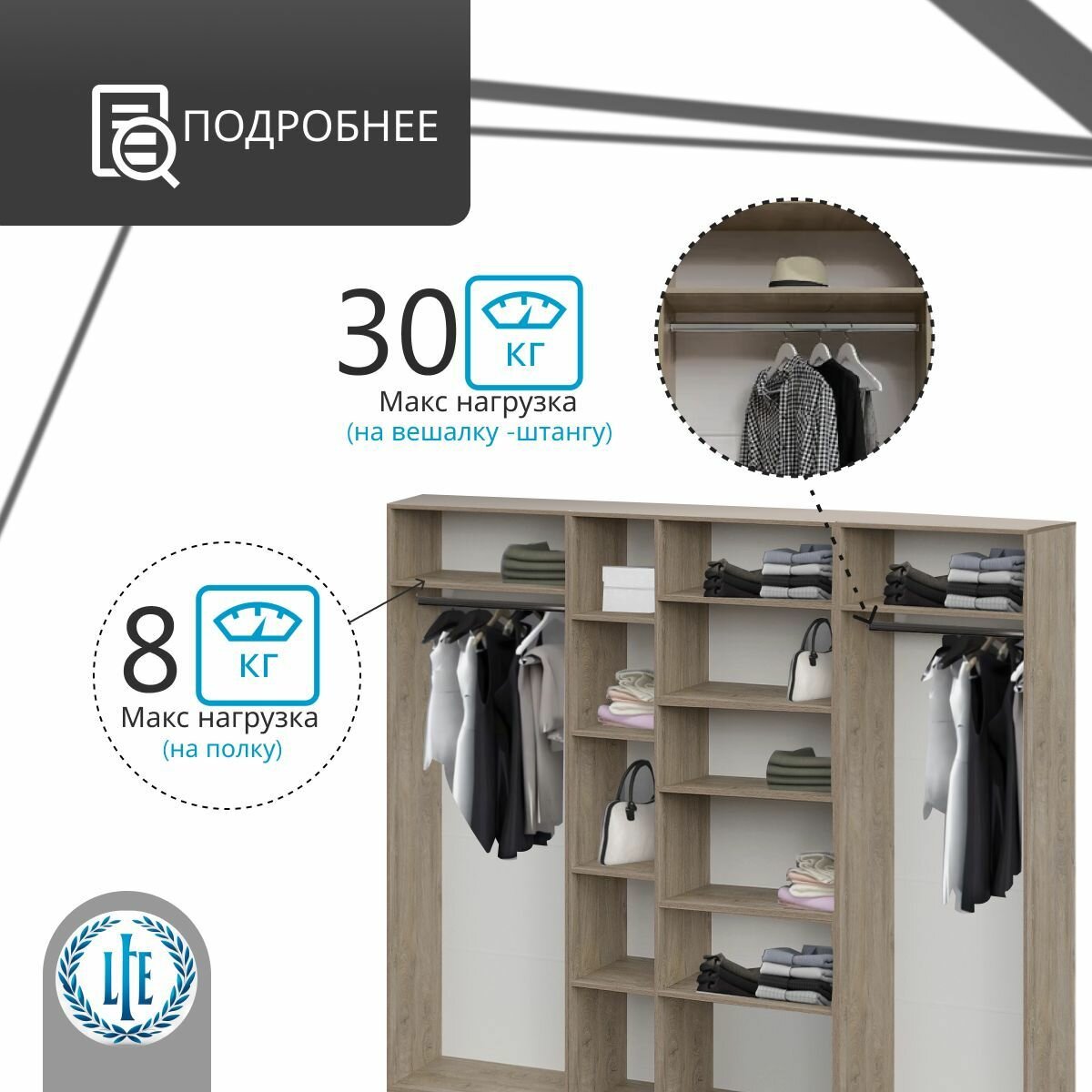 10 цен на Шкаф для одежды распашной Лувр эндгрейн/меланж(капучино), 7-ми дверный, модульный, с доводчиками, 11-ю полками и 2-мя штангами, 280.3х50.6х221.6 см
