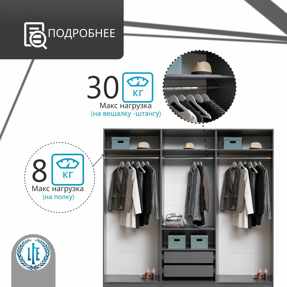 Отзывы на Шкаф для одежды распашной Лувр графит серый, 6-ти дверный, модульный, с доводчиками, 2-мя ящиками, 5-ю полками и 3-мя штангами, 240.2х50.6х221.6 см